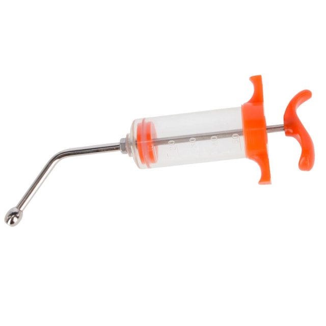 The 50 ml drinker syringe is designed for easy administration of medication or liquids to medium-sized animals. It allows for precise dosing and stress-free administration, making it ideal for regular veterinary treatments. Its 50 ml capacity enables the delivery of larger doses in a single application, making it especially useful for more complex treatments. Sturdy and easy to use, this syringe is an essential tool in veterinary or agricultural environments.